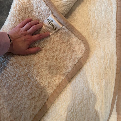 Velholdt brunt uld tæppe fra dyre- og røgfrit hjem.