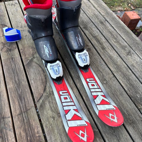 Völkl Racetiger SL ski med en længde på 140 cm. Skiene har en sort, hvid og orange farve. De er udstyret med bindinger og er til alpint skiløb.