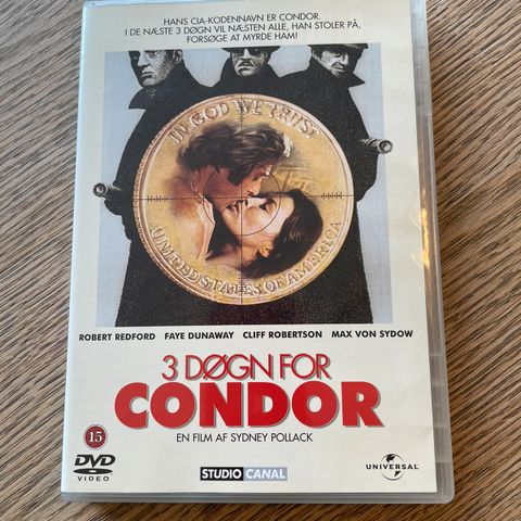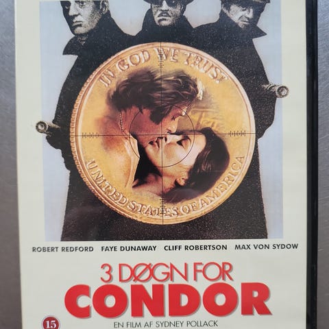 DVD filmen 3 Døgn for Condor indeholder Robert Redford, Faye Dunaway, Cliff Robertson og Max von Sydow. Filmen er en thriller med en varighed på cirka 115 minutter. Den er produceret i USA og indeholder dansk tekst. Formatet er widescreen, og filmen er i farver.