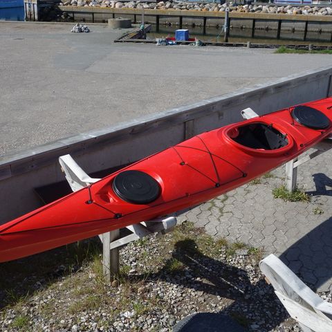 Sælger denne fine Tahe Marine Reval Mini kajak i en hvid og rød farve. Den har en nedsænkelig finne(skeg).