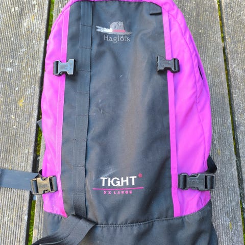Sælger min 26 liters Haglöfs Tight large rygsæk i sort farve. Den er lidt brugt,men er i perfekt stand.Rygsækken har justerbare skulderstropper og flere spænder til at tilpasse pasformen. Den er designet med flere lommer med lynlås og rum til opbevaring af personlige ejendele. Materialet er robust og velegnet til udendørs brug.