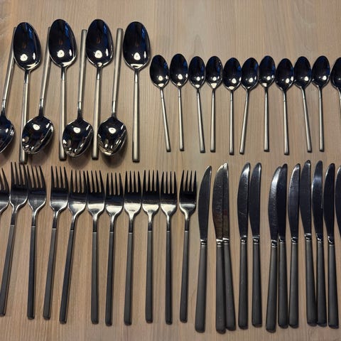 Raadvad silke serveringsbestik 4 dele, 1 sovseske, 2 kartoffel skeer, 1 kødgaffel, kun brugt et par gange så som nye. Sælges samlet for 500 kr.