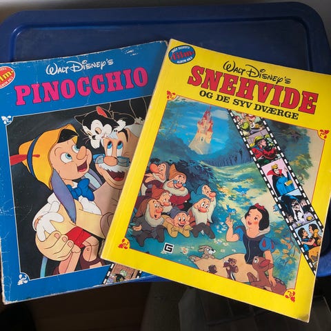 Walt Disney Pinocchio bog med stor plakat. Bogen indeholder eventyrfortælling og er illustreret med billeder fra filmen. Egnet til børn og samlere. Plakaten mangler. Sælges for højeste bud