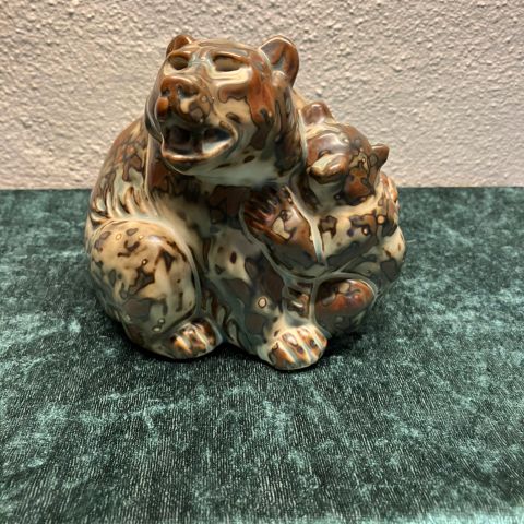 Royal Copenhagen - liggende bjørn mor. Stentøjsfigur, Brun Morbjørn. Design: Knud Kyhn. Nr. 238. Fin stand uden skår.