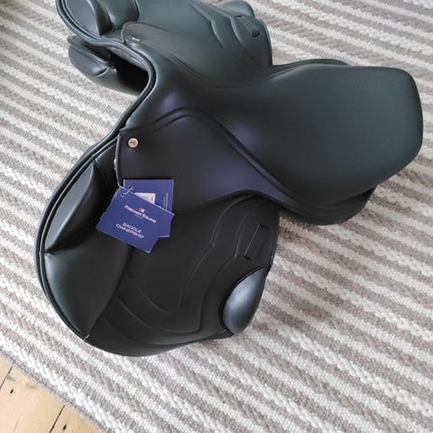 Prestige sadel i sort læder. Sadel til ridning med detaljer i metal. Designet til komfort og funktionalitet.