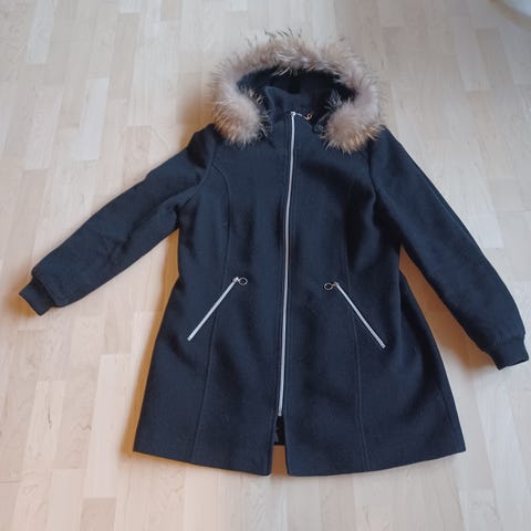 LOFT vinterfrakke i sort til kvinder, størrelse 46. Jakken er lavet af polyester og designet til at give varme i vinterperioden.Brugt få gange Den har mange smarte detaljer