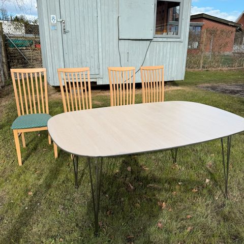 4 sorte skalstole (slidte) kan medfølge gratis.