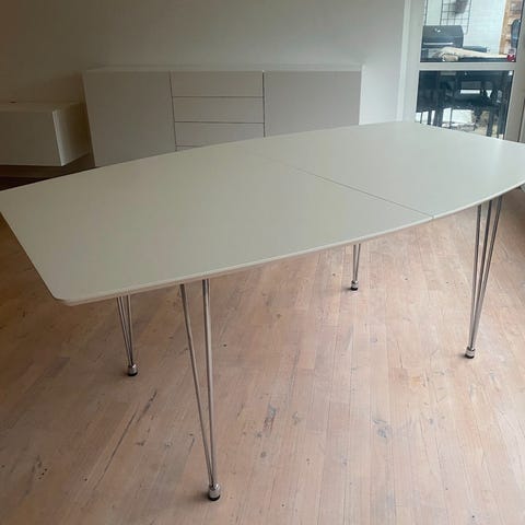 Spisebord med 2 plader på 45 cm - udslået mål 110x250 - fin plads til 12 personer.