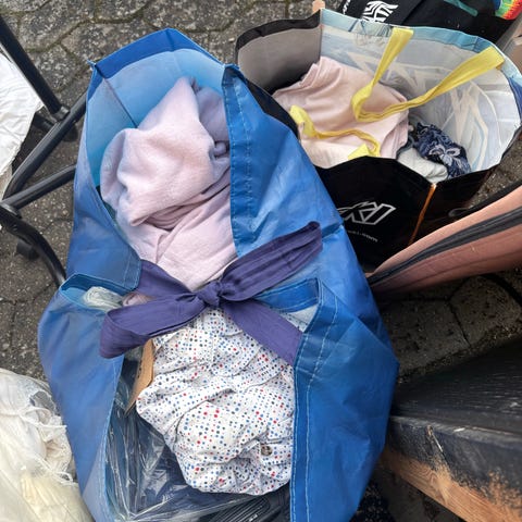 Sælger denne pose fyldt med tøj. Det meste er str. M, men en smule s/l. Der er vist et lille udpluk af hvad der bl.a. er i - der er plus 20 stk. tøj, under 40 kr., per styk.