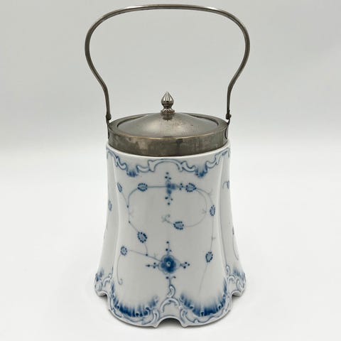 Musselmalet kiksespand i fin stand