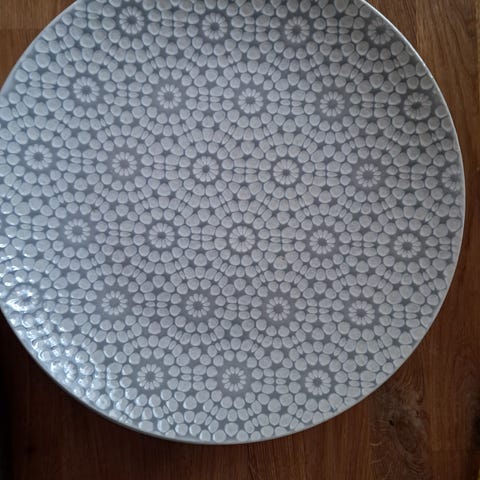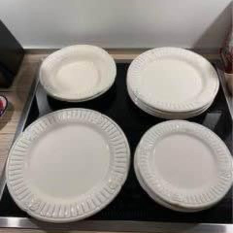 Har skål, fad og to kagetallerkner i samme stel. (Skål + fad har eget fælles opslag).