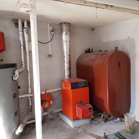 Fyret virker som det skal med oliepumpe og tilslutning til kompressor