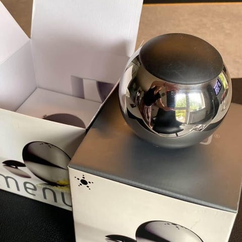 Salt og peberbøsser, til groft salt og peber, kugler af rustfrit stål, diameter ca 4 cm