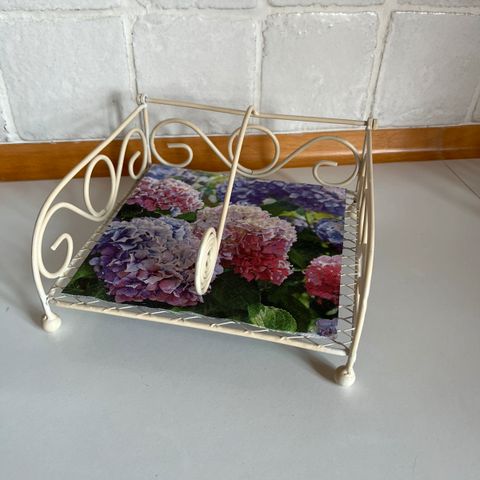Servietholder, Victoria, Japan, Metal servietholder med kakler med motiver fra Californien 13 cm høj og 10,5 x 9 cm