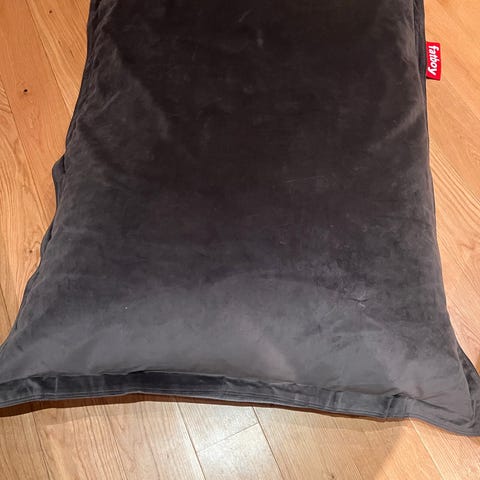 Nylig ombetrukket sækkestol med aftageligt betræk m/ fodskamle