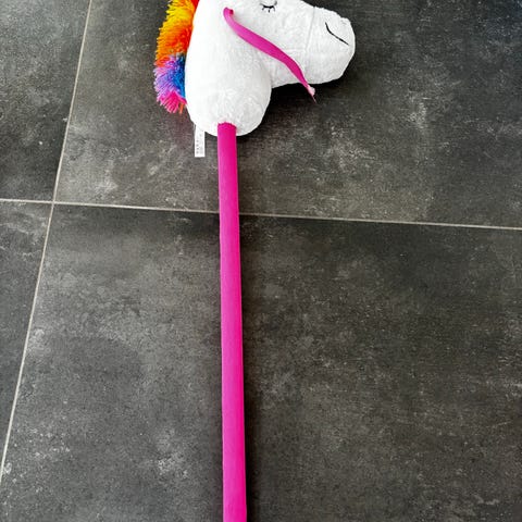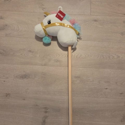 Enhjørning ponycycle i størrelse medium. Kan bære op til 40 kg og er luksus udgaven med lyd og håndbremse.