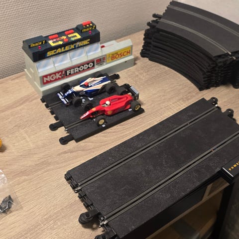 2 fine racerbiler til Scalextricbane sælges for 150 kr pr stk eller begge 2 for 250 kr . Bud modtages