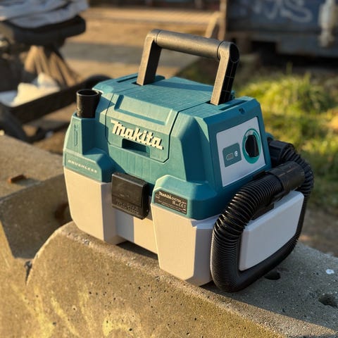 Makita Kompressor. Kompressoren er batteridrevet og egnet til mindre oppustningsopgaver. Den har en kompakt størrelse, hvilket gør den nem at håndtere og transportere.