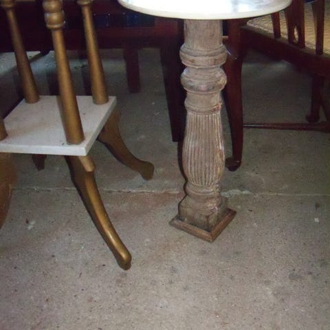 Antik blomster piedestal med marmor plader og guldmalede træben.