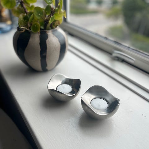 Georg Jensen Bloom (2 stk.) fyrfadsstager i børstet stål