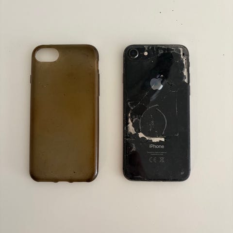 Skade på bagside, ses/mærkes ikke med cover på - følger med.