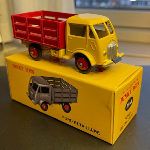 Bilen er som ny. Bilen er helt i metal med gummihjul, Har ikke fejl eller skrammer, en lille mekanisme med håndsving kan tippe ladet. Bilen er 9 cm. lang og vejer ca. 115 gram. Desværre ingen æske. Kan sendes sporbar til pakkeshop 39,- Bruger desværre ikke fix og færdig.