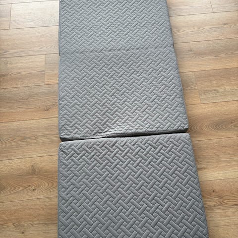 Stor foldemadras - 3 delt - i koksgrå fra Sleepy. Foldes på det lange led. Betræk kan tages af og vaskes. Har 2 stk