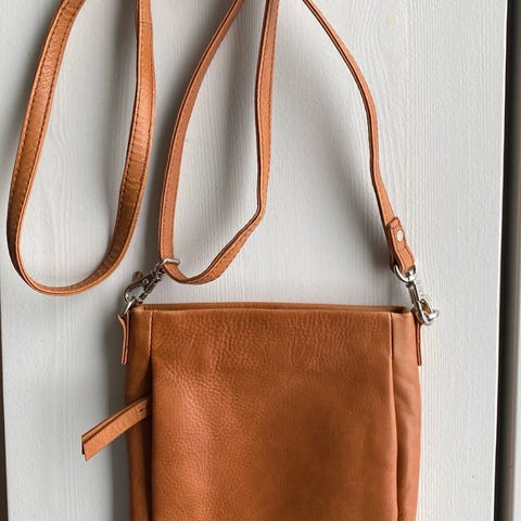Ny ubrugt Re:designed crossbody i skind - varm rød. Indrettet med et stort rum med lynlåslomme og to åbne lommer. Lukkes med klap med magnet. Regulerbar kæderem samt lang aftagelig og regulerbar skulderrem. Mål L 30 cm H 23 cm D 10 cm. Kan afhentes i Greve eller sendes.