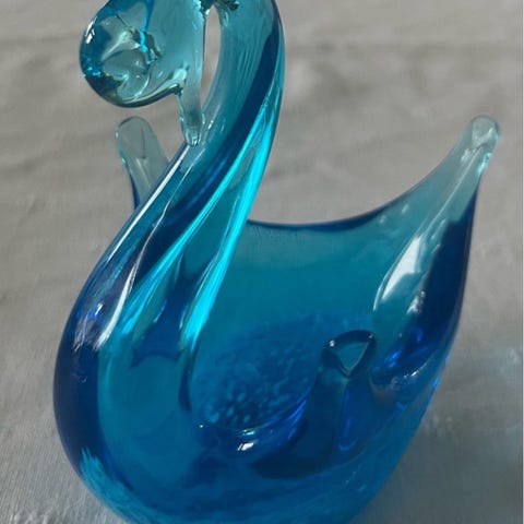 En svane med toælinger i glas + and i glas.