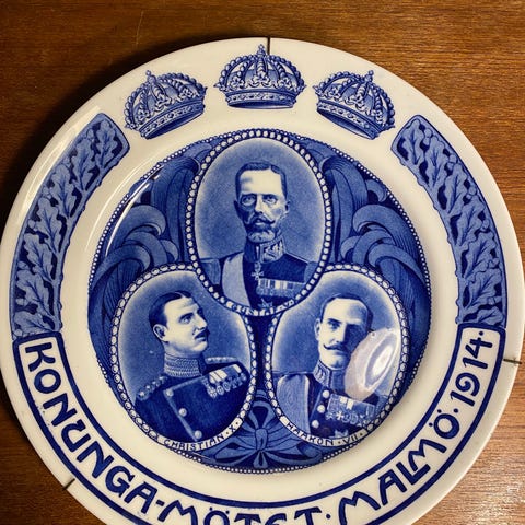 Rörstrand Malmö,Sverige,Danmark,Norge,Konger, 1914 mindetallerken