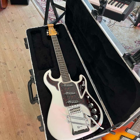 Du kan følge beskrivelsen af denne guitar under min anden annonce af Fiestarød udgaven, som er en speciel udgave. Fra denne ydmyge begyndelse gik Alan i gang med at forstå designprocessen og de indre mekanismer af den elektriske guitar som førte til Burns. I sommeren 1962 begyndte han fra garagen i sine forældres hjem i Clevelys, Blackpool, sit første forsøg på at bygge sin egen elektrisk guitar.