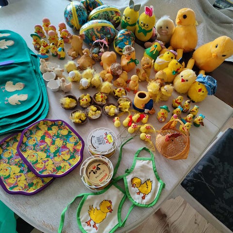 Virkelig fint påskepynt fra 60’erne. Anden kan deles på maven, blev brugt til slik og vognen og anden kan stå hver for sig. L ca på vognen incl pindene 37 og h på anden ca 18. Fin vintage stand og ses ikke ofte.