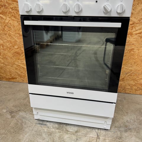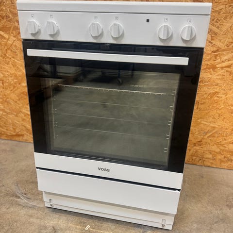 Brugt komfur med 24 mdr. garanti – Brugt Voss komfur med keramisk kogeplader og 73 ltr. ovnrum. Et rigtigt fint komfur, med enkelte brugsspor. Bemærk: Har små ridser på kogepladerne. Du er altid velkommen til at besigtige produkterne på vores lager i Glostrup inden køb