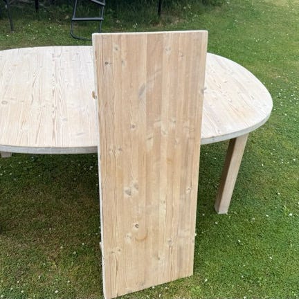 Bordet er lavet i en plade, så de to ekstra bordplader har fortløbende årer.