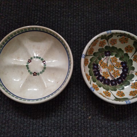 Fine små ens æggebægre fra Aluminia. Det ene (sidste billede)har et lille afslag på kanten. Udover dette er de intakte. Prisen er for alle tre.