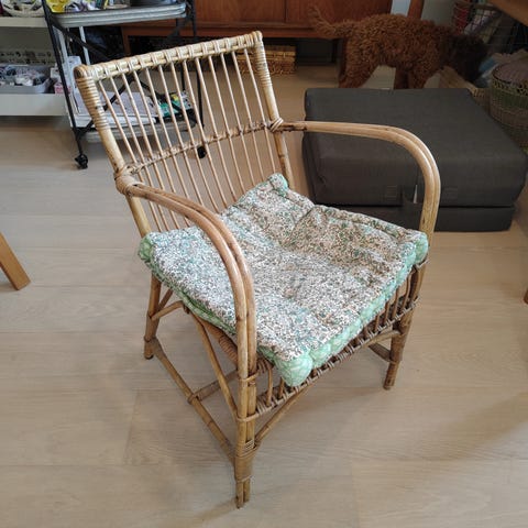Barnestol i bambus.H 62 cm, B 35 cm, D 28 cm, sh 29 cm.Flot og velholdt, gå til varen, for flere billeder. Afhentes på Nørrebro, sendes ikke.