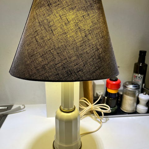 Heiberg bordlampe. Lampen er hvid porcelæn med fine messing detaljer.