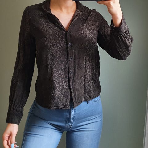 Flot skjorte i slangeskinds mønster, mørkegrøn og sort Str 36