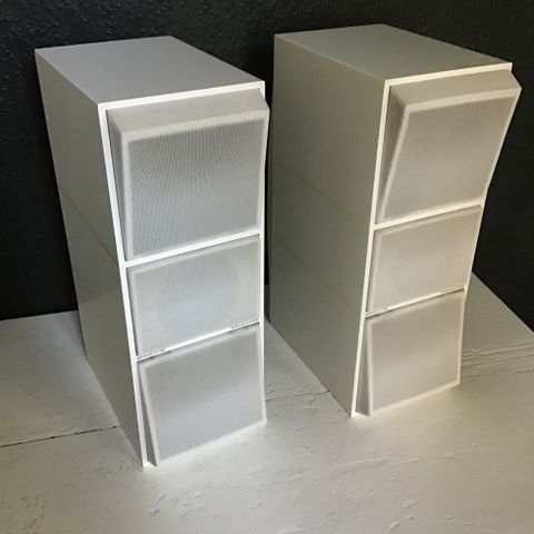 Højtalerne er renoveret og gennemtestet med professionelt måleudstyr af fagmand med 50 års erfaring. Højtalerne spiller fuldstændig som da de var nye. Alle relevante højtalerenheder er nyrenoveret med originale reservedele og en forbedret limtype. Højtalerne er med nye stoffronter. Højtaler DIN-stik medfølger.