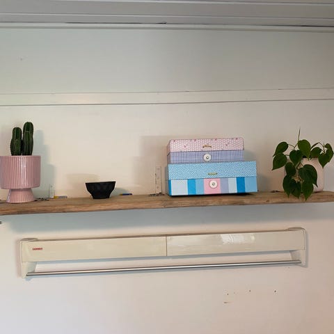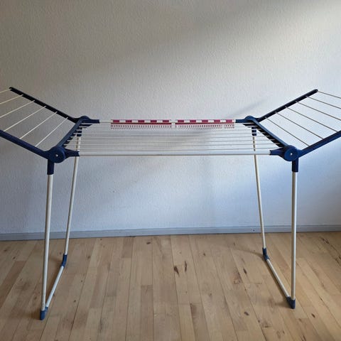 IKEA Leifheit tørrestativ til indbygning i hvidt materiale. Designet til at monteres i skabe eller lignende rum, hvor det kan trækkes ud og trækkes ind efter behov. Velegnet til tørring af tøj i mindre rum.