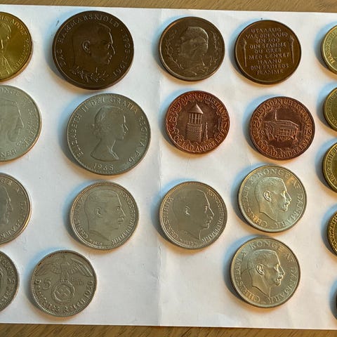 13 mønter Danmarks historie Sterling sølv 30 g. Stk.