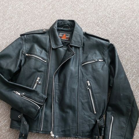 Læderjakke / biker jakke. størrelse large. Røgfrit hjem