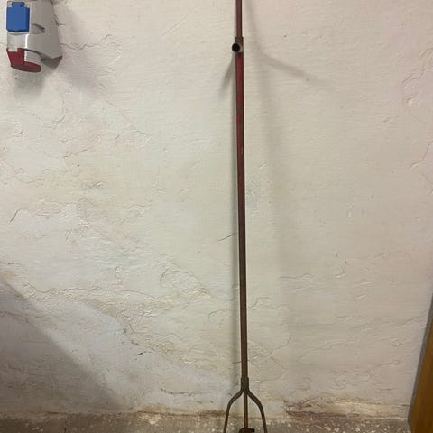 Håndtaget er 156 cm lang, og skovlens diameter er 13 cm.