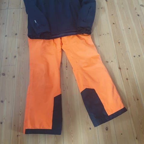 Bukser med seler og snebarriere. Alle lynlåse virker fint.