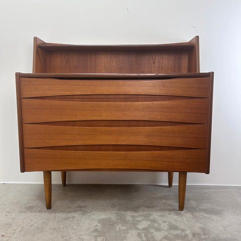 store opbevarings skuffer forneden , skriveplade , skjult sminkebord , og små skuffer foroven