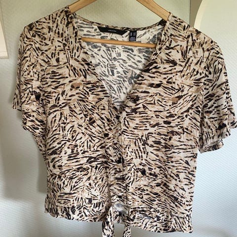 Blusen har et super sødt mønster og er fremstillet i viskose. Den har en løs pasform og lange ærmer med flæser.