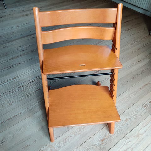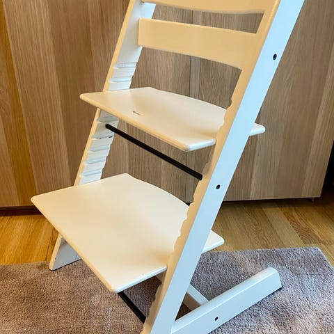 Hvid Trup trap stol - få synlige brugsspor - sæderyg indvie medfølger samt bøjlestang i lyst træ.