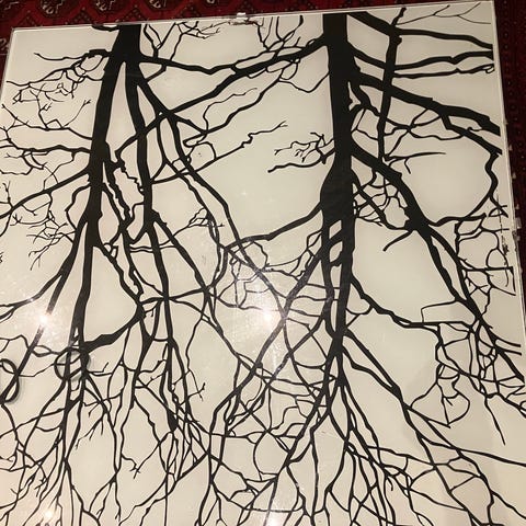 2 stk glasborde, med træben, 40 og 50 cm i diameter, højde 43 cm. Fejler intet. Før pris 1200 kr. Sendes ikke.
