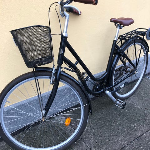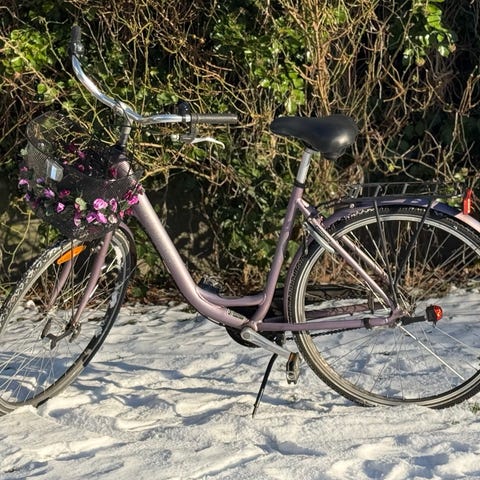Inkl. et sæt nye LED cykellygter, kurv og godkendt lås med 2 nøgler.