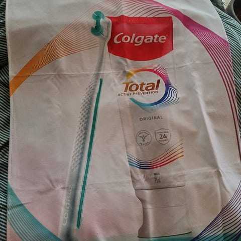 Nyt og ubrugt limited edition håndklæde fra McDonalds med teksten “ba da ba ba ba”. Skal ligge i en spand med koldt vand i 24 timer før det vaskes og tages i brug, ellers kommer det aldrig til at suge ordentligt.